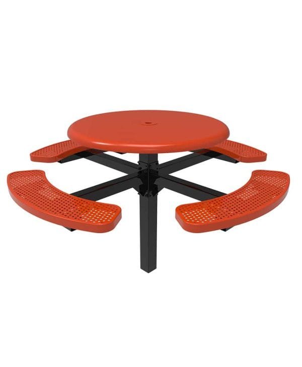 The 46″ Octagon Pedestal Picnic Table with Rolled Seats – ParkTuff™ brings together durability and style for busy outdoor settings. Available with expanded-metal or perforated-metal tops and a range of color options, it provides a reliable and attractive solution for parks, schools, and commercial spaces.